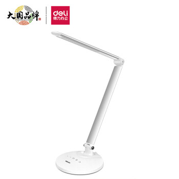 得力(deli) LED折叠护眼台灯 学生卧室寝室书桌学习大容量可充电插电床头两用灯触控九段灯光调节 白色 17855