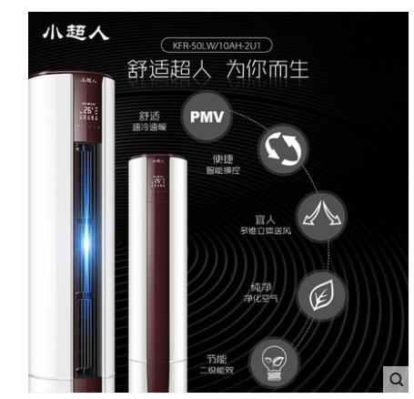 • 商品名称:小超人 KFR-50LW/10AH-2U1 2匹智能定频冷暖圆柱柜机立式空调